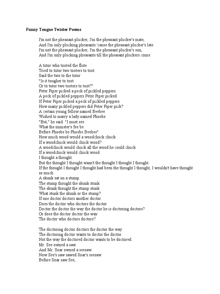 Tongue Twister Poems Pdf Reader Webk Scheko Site - Tongue twisters are one of the most fun forms of wordplay for kids.