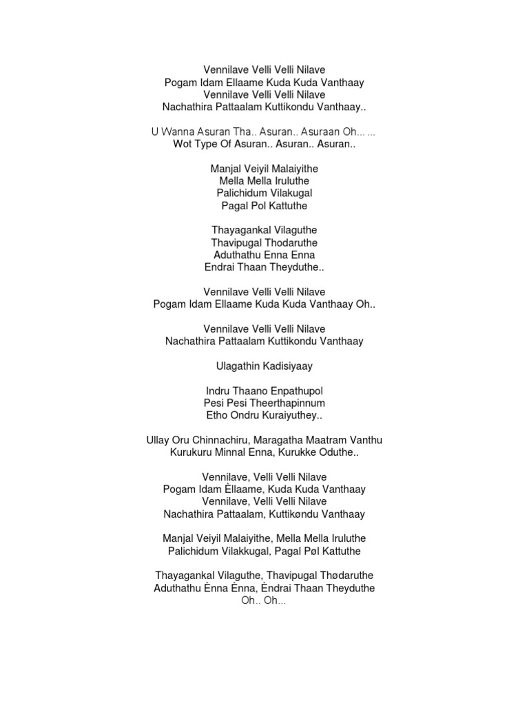 Vennilave Vennilave Song Lyrics In Tamil Vennilave Vennilave Song Lyrics In Tamil / Old and new tamil song lyrics.