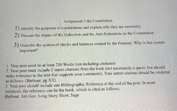 Assignment 1 The Constitution 1 Identify The Purp Chegg Com - By giving the people the right to rule themselves, the constitution protects our rights.